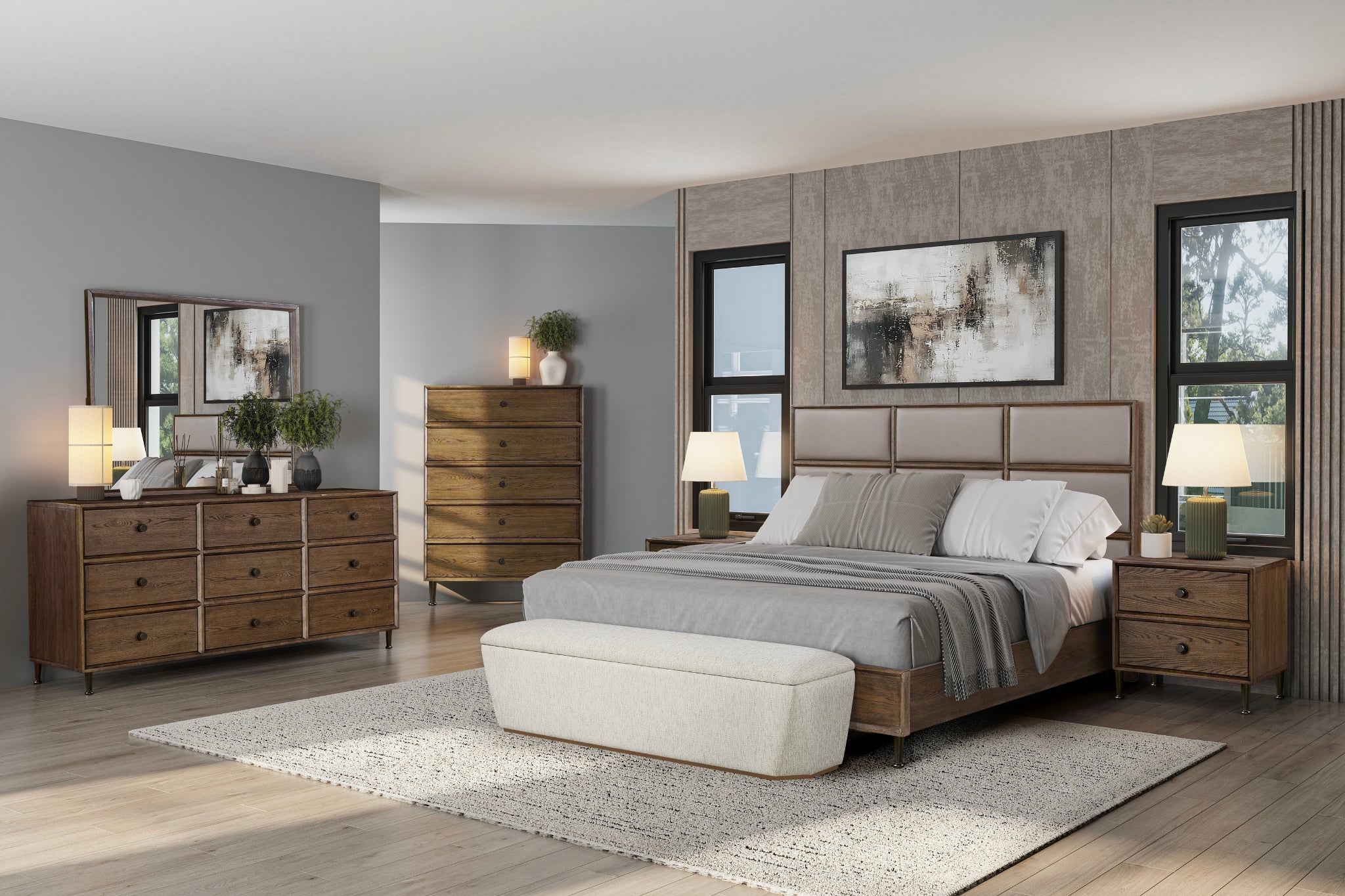The Linné Bedroom Collection by APEX blends form, function, and flexibility for the modern home. Each piece is thoughtfully designed to offer a customizable look, allowing you to choose between sleek modern lines or a more transitional style. Available in rich Rye and warm Wheat finishes, Linné brings timeless versatility and refined sophistication to your personal retreat.