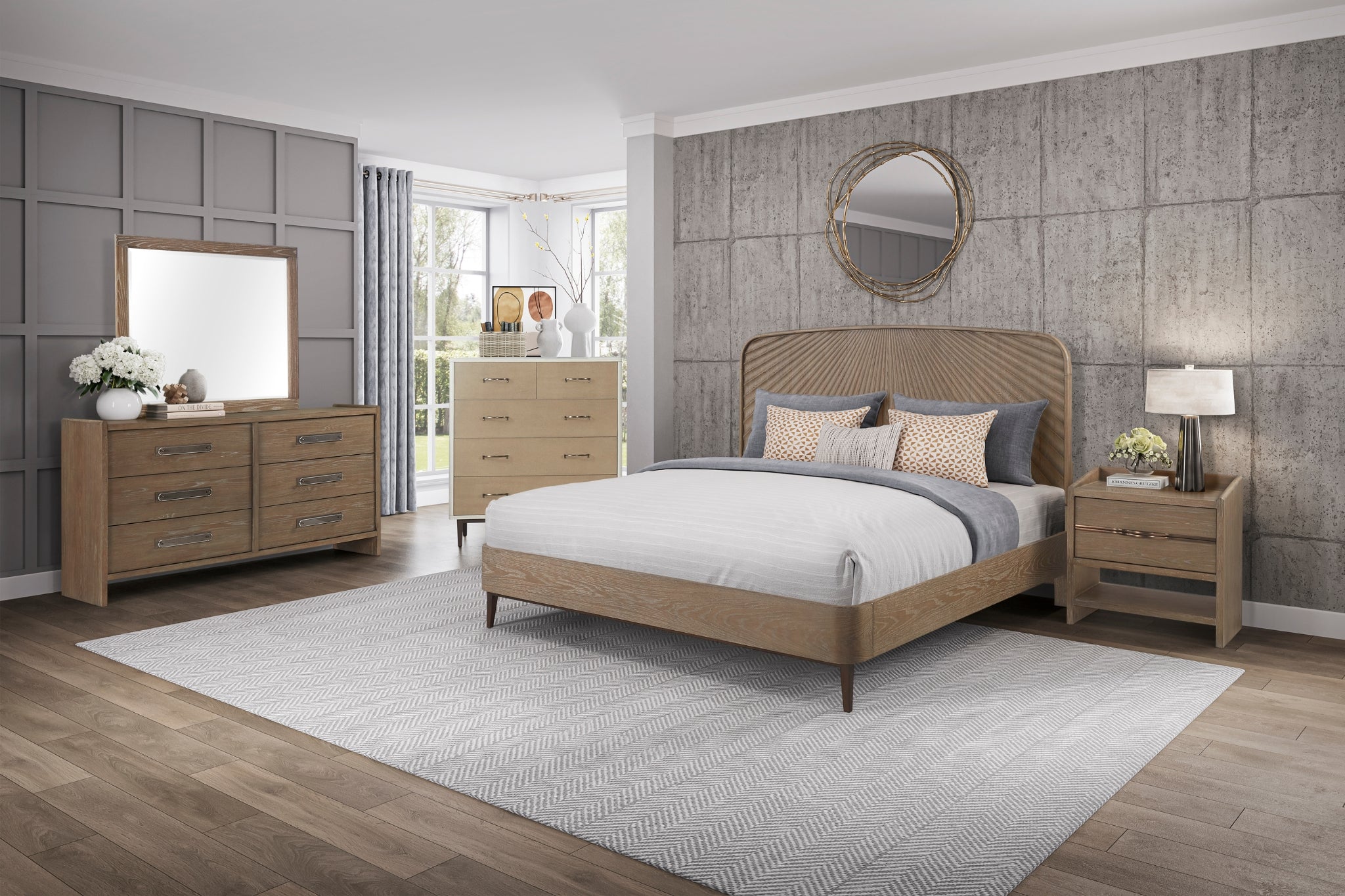 Trilogy mirrors bring a graceful sense of balance and brightness to your bedroom. Designed to complement the collection’s sculptural forms and elegant textures, each mirror adds depth while highlighting the room’s natural flow. Whether mounted above a dresser or styled as a standalone accent, they complete the space with timeless clarity.