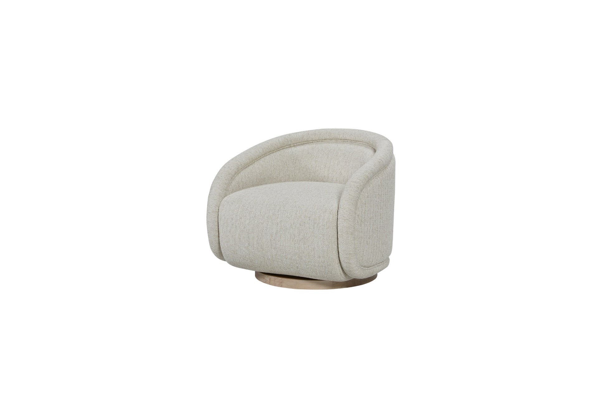 The Swivel Lounge Chair embodies effortless comfort with a nature-inspired silhouette that invites relaxation. Its plush, rounded form is wrapped in a soft, textured fabric, complemented by earthy piping for a refined touch. Resting on a smooth wood base, this chair brings warmth and organic elegance to any space. Designed for moments of quiet retreat or cozy conversation, it offers a perfect balance of style and comfort. Let the Swivel Lounge Chair transform your home into a tranquil sanctuary.