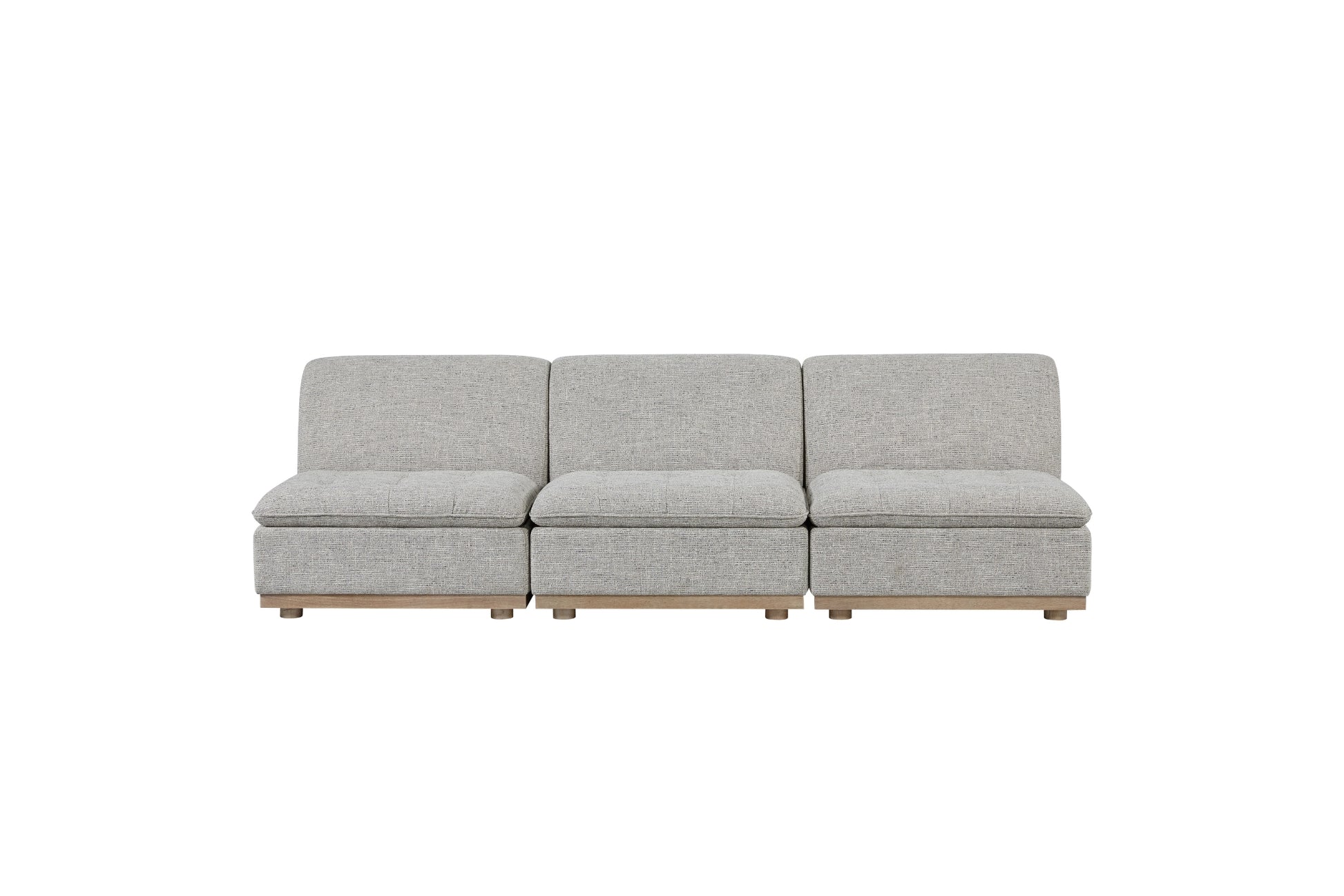 The Pagosa Dublin Modular Armless Chair offers endless possibilities for creating a personalized seating arrangement that fits your space and lifestyle. Upholstered in a light grey, textured fabric, this piece brings a soft, organic feel that complements modern, nature-inspired interiors. Designed to be combined with the matching corner chair and ottoman, it allows for versatile configurations, from a cozy lounge to a spacious sectional. Its clean lines and plush cushioning provide both style and comfort, making it a seamless addition to any living space. Functional and effortlessly adaptable, the Dublin Modular Armless Chair invites relaxation with a design that evolves with you.